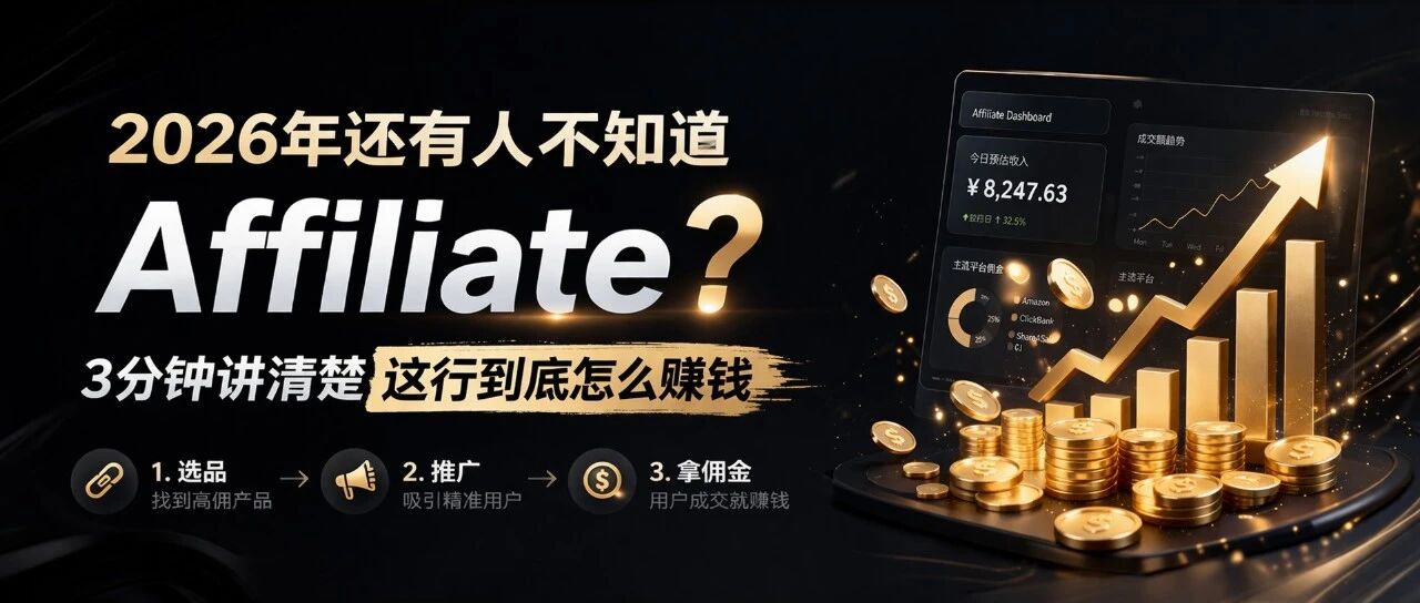Affiliate Marketing(联盟营销)本质是帮商家推广赚佣金,分CPA、CPS、CPL三种模式。本文用白话讲解广告主、联盟平台、流量方、用户之间的链路关系,梳理新手期(可能亏钱)、进阶期(日利润$10-$100)、成熟期($100-$1000)的赚钱阶段。启动资金建议...