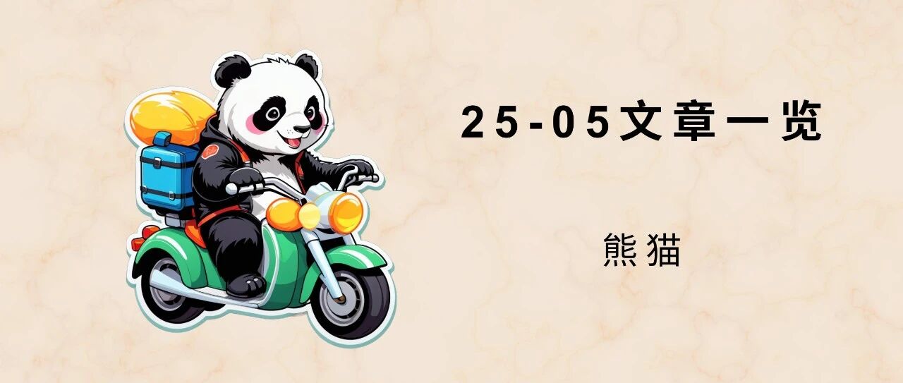 2025年05月,我在《熊猫搞钱记》共更新20篇文章,如下:这个月有点太忙了,月初假期的几天没写。接下来的几个周末都没时间写。对于这个发布量,我感觉是比较满意的,也达到了一种比较舒适的状态,之后的月份大概就是这个节奏了。15-20篇/月的发布数量会比较好一点,文章质量也会高一些,还得留一些时间学习进步,不能只有输出没有输入。关于文章