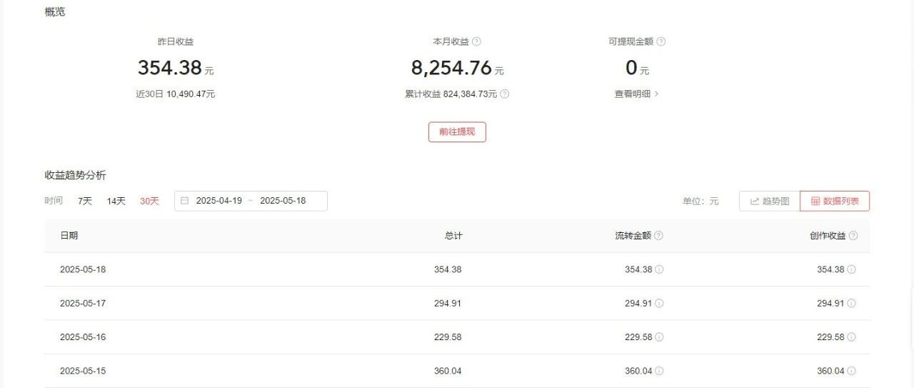 给大家看一下我的后台收益,昨天收入354元,这个月也赚了8254元了。