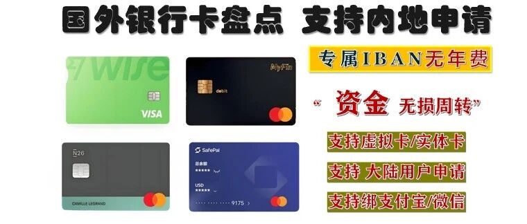大家好,欢迎来到泥伏雷闯关记,我是小泥伏雷!今天我们盘点一下支持内地用户申请的国外银行卡,其实之前都单独出过图文攻略和视频攻略,这期整合串讲一下,有需要的可以自行去开通。