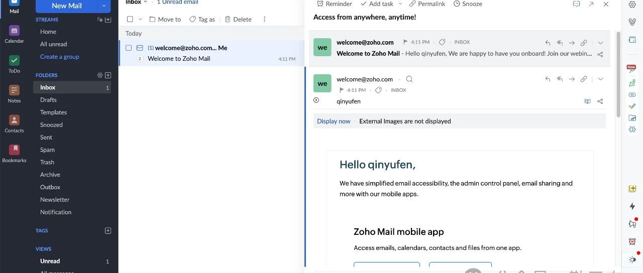 注册地址:https://www.zoho.com/mail默认商业邮箱,一定不要搞成个人邮箱了,有粉丝反馈这个情况,我这里再次给大家演示一下,选择第一个默认的商业邮箱就行,因为我们是域名邮箱就是要商业的,名字大家随便写一个,然后可以用邮箱来接收验证码或者手机号来接收验证码。输入之后填写验证码就进入到下个页面,这个页面直接选择Try Now按钮,就是试用的,不需要花钱的版本,够我们使用了,如果不够使用,以后在升级也来得及。这里第一个就是绑定我们自己的域名,然后第二个就是购买域名,在这里购买域名还是有点小贵,所以我们当然是绑定自己的域名了。add now 之后出现如下界面,输入你的域名,然后add now继续。然后提示添加成功,去解析域名,域名所有权验证,我们用官方推荐的通过在域名后台添加txt记录就可以。这里验证域名的所有权限其实是有很多种方法,推荐使用txt的方式,就是在域名里面去解析一条记录。我使用的是namesilo这个平台,今天就给大家演示这个平台的操作步骤,登录账号然后选择my account账号管理,添加一个txt记录。按照以上添加完成之后,接下来回到zoho网页后台去验证是否成功,提示成功,接下来输入你的邮箱email名字,一般是admin这样的,所以输入admin然后点击创建,这样域名邮箱就创建好了,但是接下来要解析一些值。接下来继续解析,点击proced to setup groups 这里是跟群组有关的,我就一个人,所以无需创建群组相关功能,大意就是如果这里添加了用户,后续有邮箱进来这几个人都能收到邮件。接下来就是去域名邮箱解析完毕一下的值就可以使用邮箱了,可以看到有3类记录要添加:3个MX,1个SPF,1个DKIM。添加完毕之后直接点击验证可能要提示错误,需要等一会儿。接下来看你有没有之前的邮件需要迁移的,没有就继续。接下来提示你手机安装一个APP,根据自己情况来是否安装。https://mailadmin.zoho.com/cpanel/home.do#dashboard网页端查看邮箱的地址:https://mail.zoho.com/zm/#mail/folder/inbox写到这里就差不多了,其他的一些小功能大家自己去研究吧,比如邮箱的个性签名,什么时区功能。附:诚信为人,认真做事,人在做,天在看。每日更新一篇关于技术或者国外lead文章长期坚持原创不易,如文章引起大家共鸣请大家关注,点赞,转发,以支持勤于奋继续分析创作。