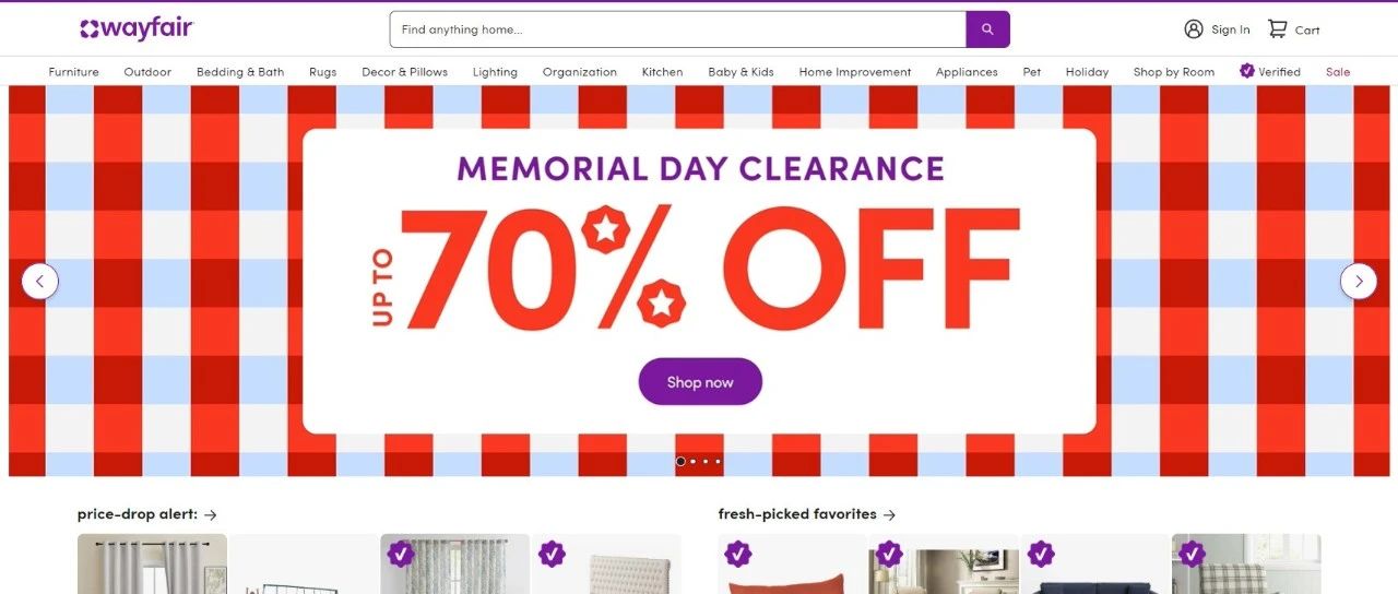 Wayfair的核心热销品类包括: