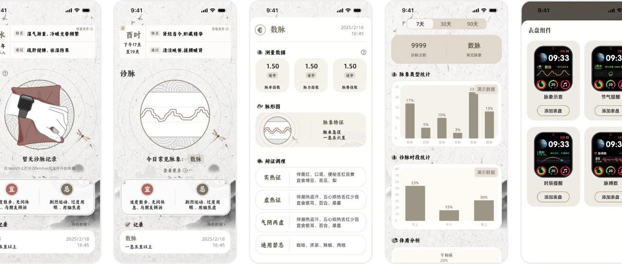 MaiWatch 应用中的健康分析数据来源于设备传感器对脉象的实时监测与记录,并结合传统中医理论模型进行算法分析。