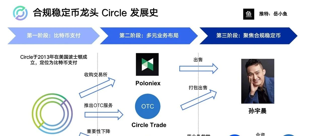 第一个阶段是在2013年,Circle在美国波士顿成立,最早定位是比特币支付,类似于"比特币支付宝"。