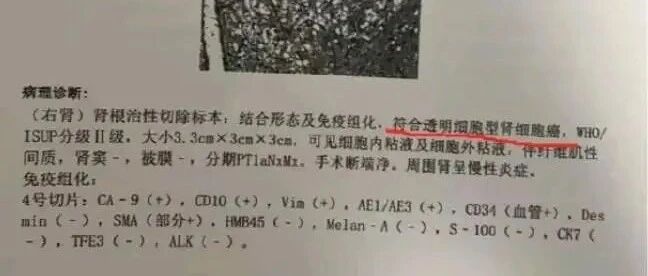 这就不难理解为什么2023年10月在爱康体检,报告提示张女士"右肾钙化灶",也就是超声检测时并无癌症迹象,到2024年11月,张女士在北京某医院手术,病理确诊为早期肾癌(分期为"pT1aNxMx")。而参考发表在学术期刊上的肾癌样本的生长速度范围从0.2厘米/年到6.5厘米/年,张女士在爱康体检时没有肾癌迹象到一年后初次发现早期肾癌大小为3.3cmx3cmx3cm,属于肾癌的生长速度范围内。再次明确,体检后初次发现的是早期肾癌,并非晚期。