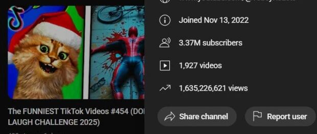 这个频道发了650多个视频,观看量超过11亿。
