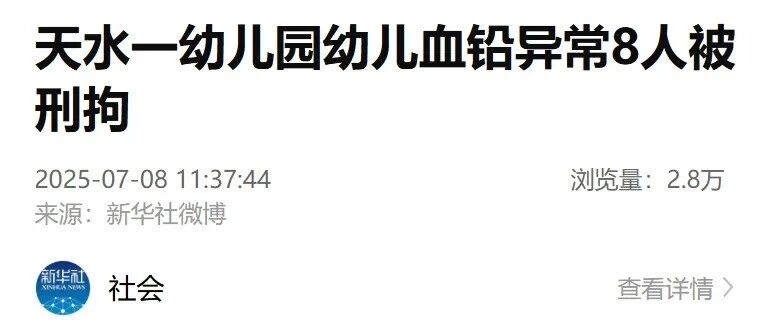 7月8日,甘肃天水市联合调查组发布关于天水市麦积区培心幼儿园幼儿血铅异常问题调查处置情况的通报。