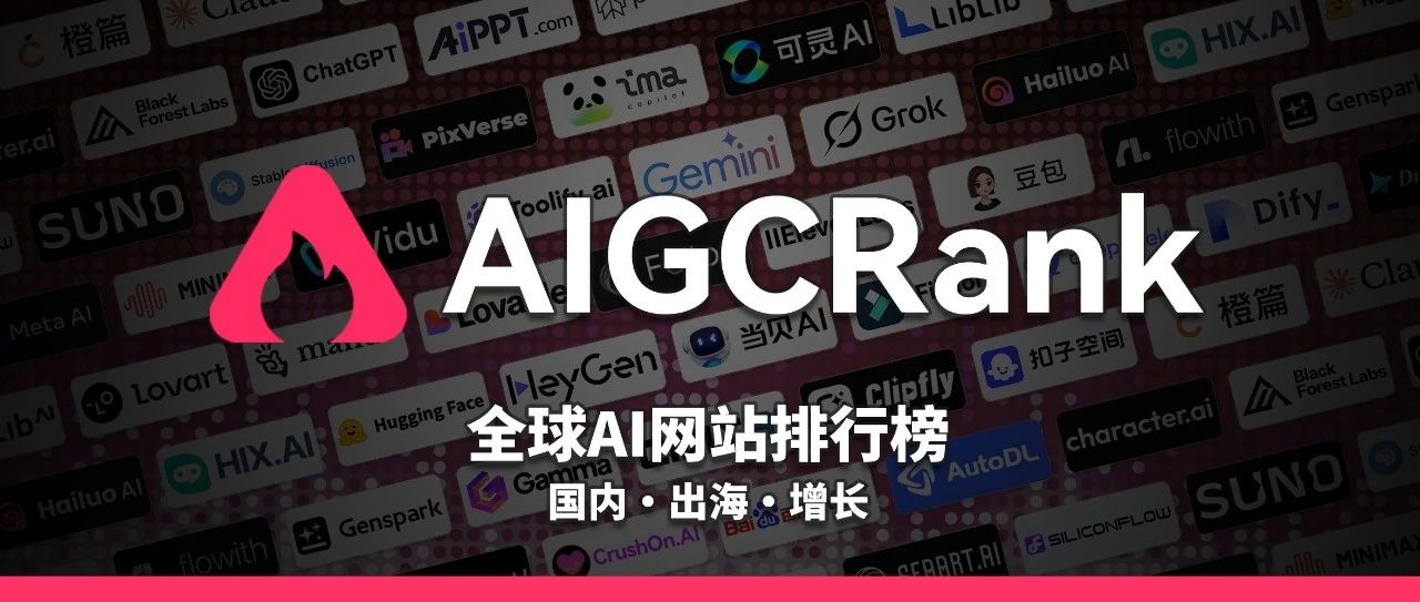 全球AI产品风向标AI排行榜 AIGCRank 今日发布2025年7月《AI网站排行榜》。AI排行榜由AIGCRank出品制作,平台基于全球3万+产品数据库,追踪全球AI产品动态,发布月度产品数据榜单。