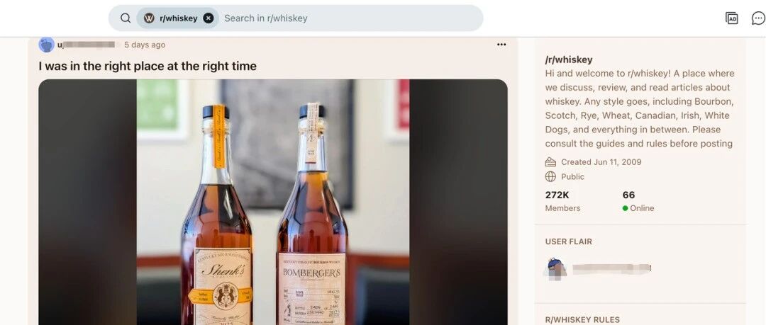 这个社群是我这两天刚好在看这个蔡澜的这个新书《人间智慧三部曲》,里面提到了他如何挑选威士忌,我觉得挺有意思的,就去 Reddit 搜了下威士忌,没想到活跃的人很多。