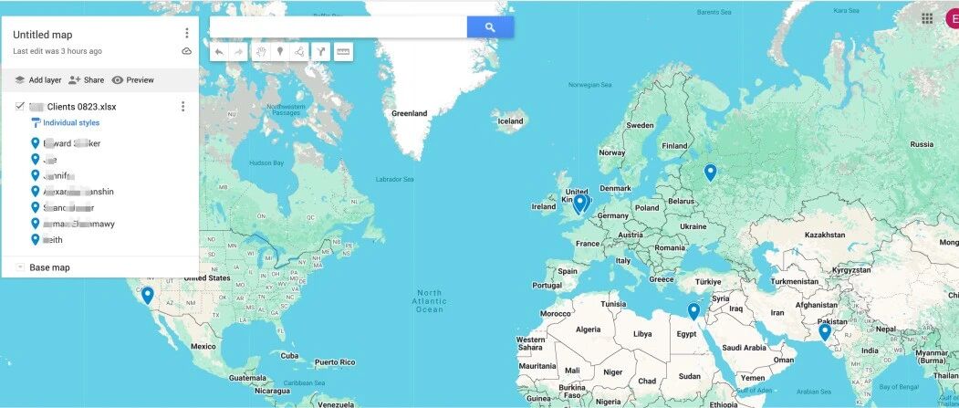 今天用谷歌地图,做了个客户地图表,把目前在聊的比较好的客户放进地图,方便自己查看,希望后期地图上的点越来越多,单独一个国家,都可以覆盖起来。