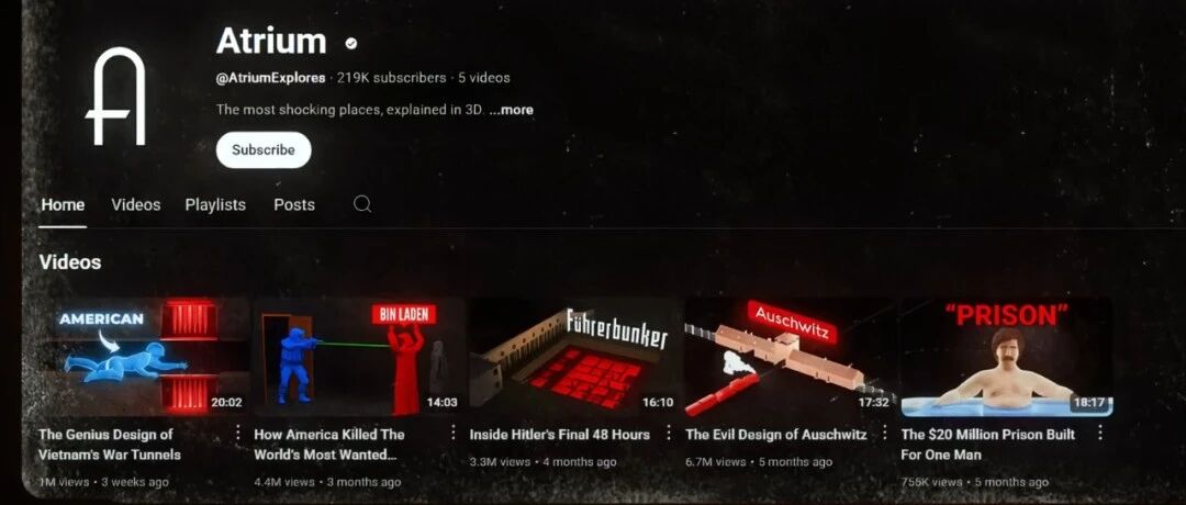 要是你最近常刷YouTube,过去几周肯定看到过这类3D纪录片视频霸屏。下面这个频道,只发了10个视频,频道就开始盈利了,订阅量超过22万,每次上传视频都能轻松获得超百万的播放量。