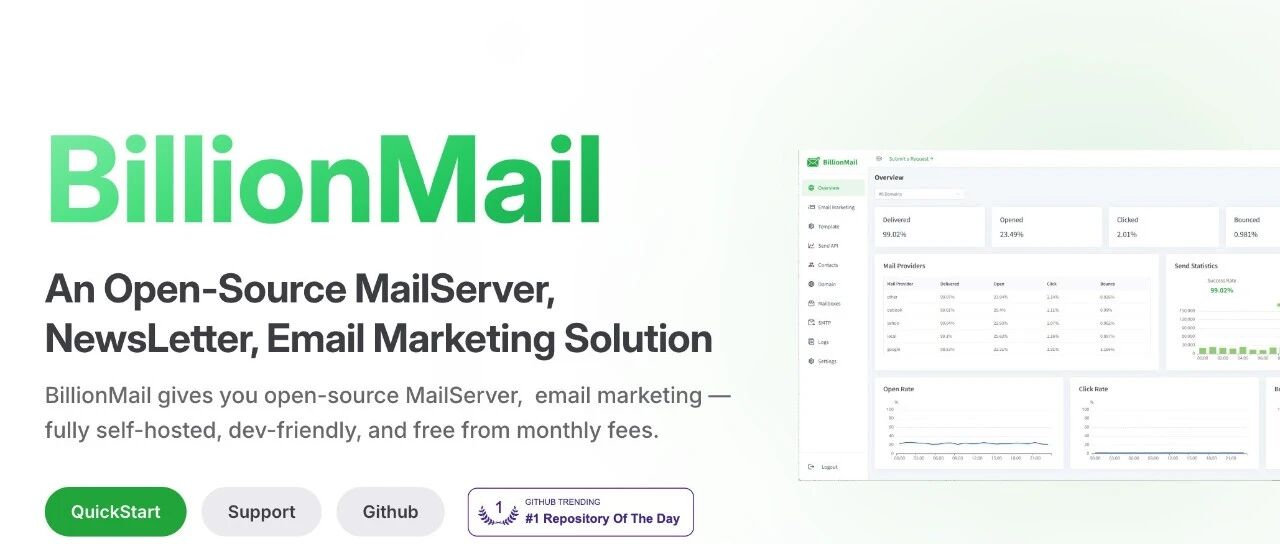 BillionMail 是一个开源的邮件服务器和电子邮件营销平台,