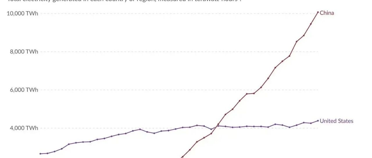 如今,美国的领导地位再次受到一个威权政权的挑战。就经济实力而言,中国比苏联曾经的对手要强大得多。周一我指出,中国经济实际规模已远超美国,对此一些读者表示怀疑。事实上,按购买力平价计算的GDP是一个非常有用的衡量标准,但如果它看起来过于技术性,那么不妨只看与经济发展密切相关的发电量。正如本文开头的图表所示,中国目前的发电量远超美国。