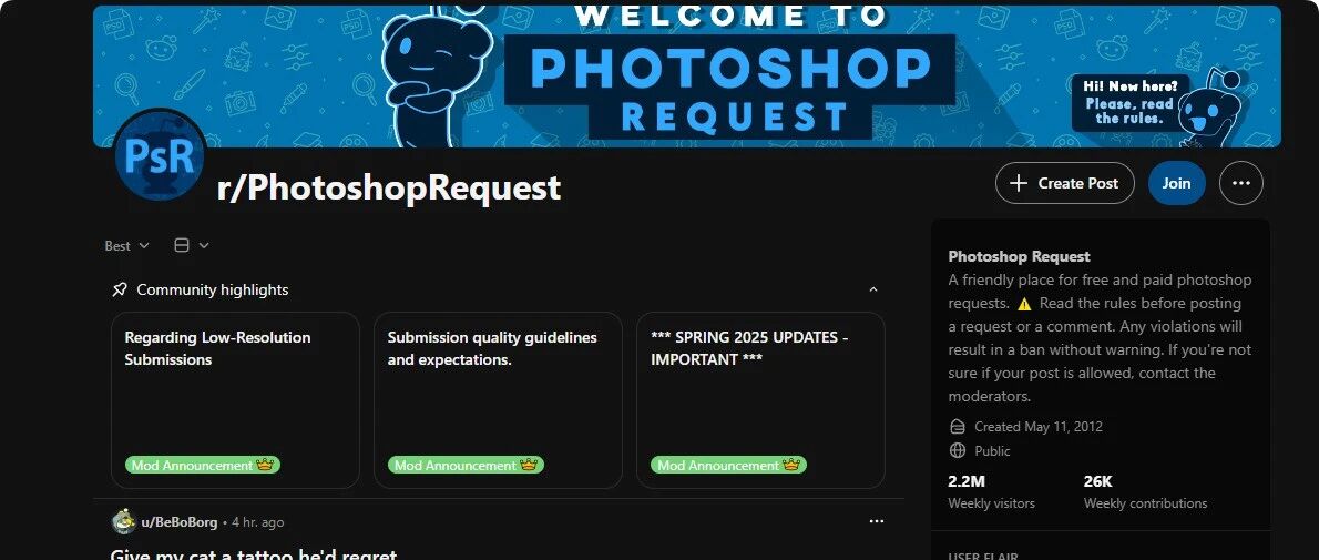 先说接单这事儿吧,Reddit的r/PhotoshopRequest社区,简直是金矿。