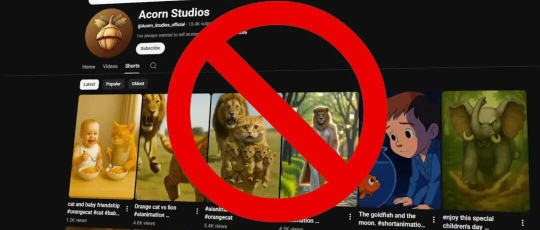 它曾经很火,有数十亿播放量。于是大家都上传情感、搞笑、可爱的AI动物视频,YouTube上这类内容泛滥,最后YouTube直接对这些频道进行了限流和封禁。做这种视频可能简单又有趣,但最后没啥用。