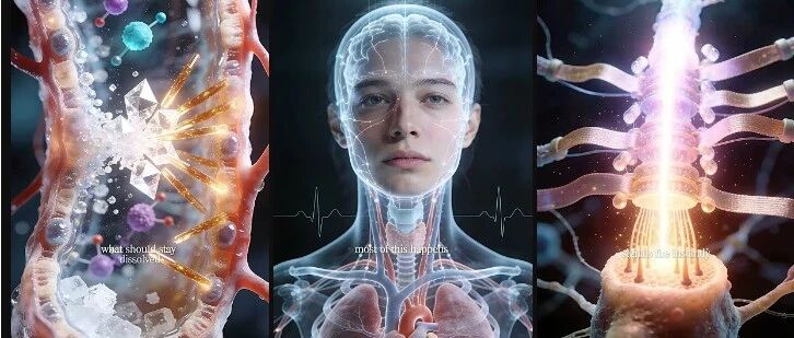 I will send you images. Turn each image into a full animation prompt. Describe movement, tension, camera angle, environment details like smoke, fluid, particles make it feel like we are inside the body. These will be animated in Kling. Understood?你的视觉内容已经鲜活起来,现在需要能让观众 "感受" 到情绪的声音和配乐。