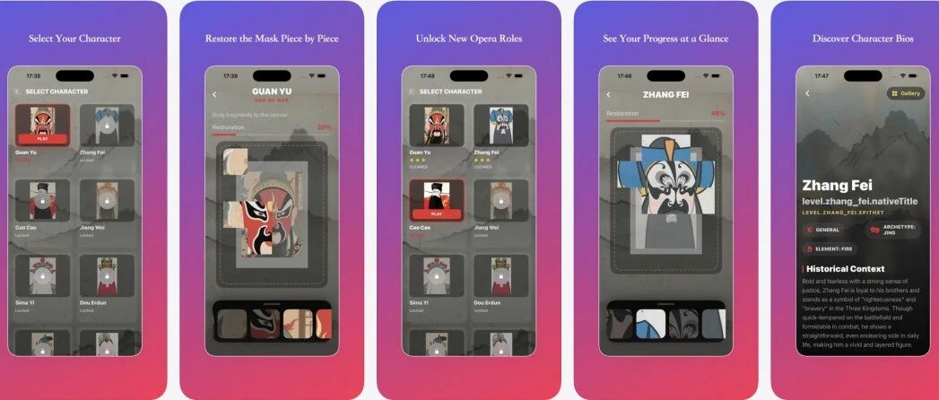 京剧脸谱主题的puzzle游戏,这个产品只卖0.99美金,有点太便宜了,如果有朋友认识他,建议他改改价格。
