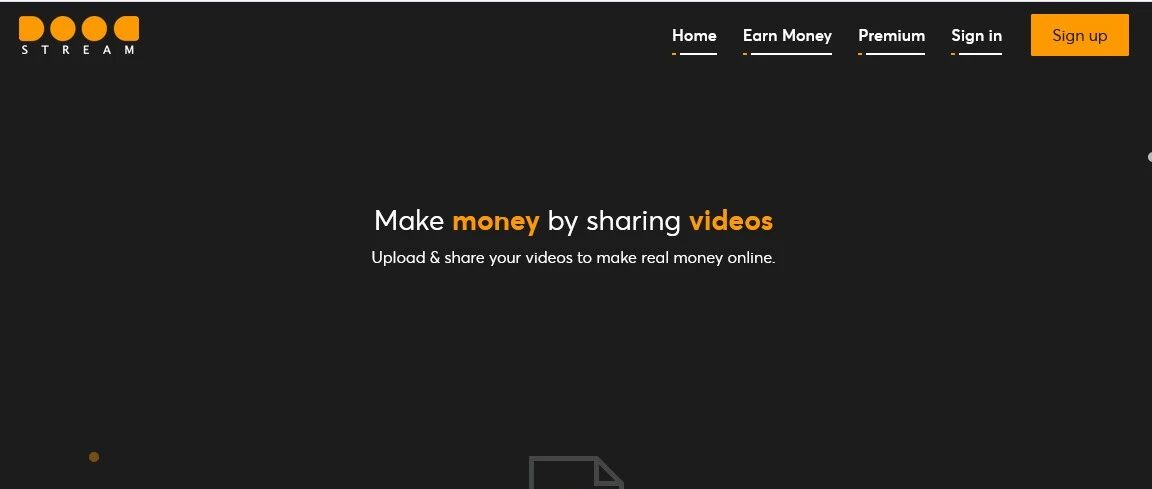 今天我们介绍一下另外一种赚钱的模式,这个不属于affiliate marketing了,也是已经存在很久的一种模式,我们以一个网站为例。网站是doodstream.com,首页写的非常清楚,分享你的视频来赚钱。
