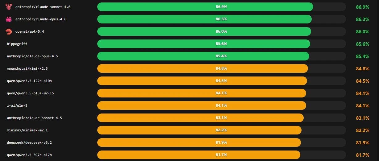 PinchBench 是目前 最权威的 OpenClaw 模型排行榜。